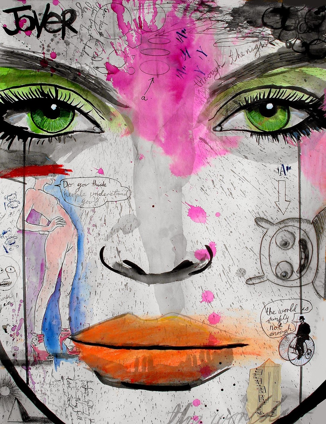 Луи Джовер (Loui Jove) — талантливый австралийский художник, обладающий уникальным стилем живописи. Он, в основном, использует тушь на страницах старых книг и журналов для того, чтобы создавать привлекательные и эмоционально заряженные изображения женских лиц. Его образы могут состоять из пар в сильном эмоциональном напряжении, прямо таки излучающих энергию. Работы Джовера были названы одним из критиков истинно творческими и эмоциональными. Луи начал рисовать очень давно, еще в глубоком детстве, став постарше много путешествовал по всей Европе и Азии, постепенно превратившись в заядлого художника, который не мыслил себя без того, чтобы не рисовать каждый день. В 1998 году Луи отошел от дел, но в качестве полноправного художника продолжает привлекать зрителей в галереи Квинсленда, Австралия, города, где он живет со своей женой Фи и дочерью Джаз.